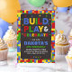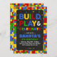 Celebre o grande dia do seu filho com este convite de aniversário de blocos de construção alegre e colorido! Com tijolos brilhantes, este design é perfeito para a festa de aniversário de um menino ou para qualquer criança que adora construir, jogar e criar. Quer você esteja planejando uma festa de aniversário de criança divertida, uma festa temática de tijolos, uma festa legal para meninos, ou uma celebração criativa e única, este convite dá o tom perfeito. Facilmente personalizável com os detalhes da sua festa e excelente para qualquer idade para as crianças.