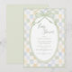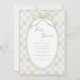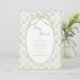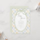 Fundo xadrez verde, azul e amarelo com molduras ovais de dois tons. Um design doce e único para qualquer chá de bebê. Belas fontes coordenadas. Absolutamente encantador.