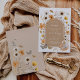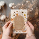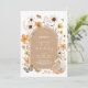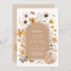 Inspirada pela adorada personagem de conto de fadas "Thumbelina", uma doce fada toma palco central neste convite. Com suas asas delicadas e sua pequena armação, ela captura a essência da inocência e da maravilha que define a infância. A bela exibição floral de flores silvestres boho em tons quentes de queda de laranja, bege e mostarda, ao lado de borboletas graciosas e abelhas ocupadas adiciona um toque de encanto, representando alegria, liberdade e a beleza da natureza.