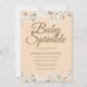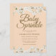Um bonito e elegante convite para o bebê, neutro em termos de gênero, apresentando um delicado primavera florescimento, enquadrando os detalhes do seu bebê borrifador em elegantes letras douradas num fundo cor de pêssego. Personalize com seus detalhes de eventos especiais. Projetado por Thisnotme©