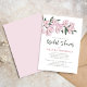 Este design apresenta um chá de panela, com rosa-pincel, floral, elegante, flores aquáticas, perfeito para festas de jardim, com roteiro de caligrafia, uma floral moderna botânica, elegante, perfeita para a noiva