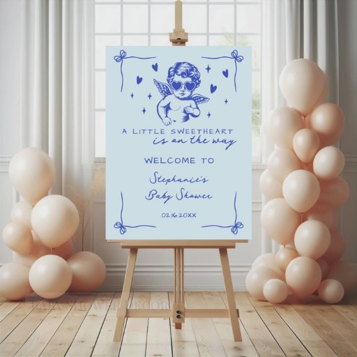 Celebrate your little love with this A Little Sweetheart Is on the Way Baby Shower Invitation, a romantic and timeless design perfect for Valentine’s-themed and winter baby showers. Featuring an adorable vintage-style cupid illustration with heart sunglasses, delicate hearts, and a soft baby blue background, this invitation blends classic charm with playful coquette flair.