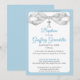 Convites Blue and Gray Watercolor Bow & Cross Baptism