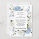 Celebrate love with this beautifully illustrated wedding invitation, featuring a watercolor frame of blue and white hydrangeas, white roses, corresponding floral elements, and soft greenery. The airy botanical design is complemented by classic serif and script fonts, creating a timeless and romantic aesthetic. Perfect for garden weddings or spring celebrations, this invitation sets a graceful tone with its clean layout and fresh floral palette. Easy to personalize with your own information.