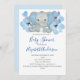 Convites Blue Baby Boy Elephant Chá de fraldas Flowon