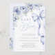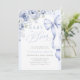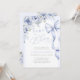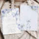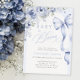 Celebre a temporada dos novos começos com este doce bebê no convite para o chá de fraldas Bloom, com flores azuis suaves, um delicado arco azul claro e um charmoso design de inspiração de coquetes.