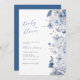 Chá de fraldas Floral Azul que homenageia a mãe! Design apresenta uma borda de flores pastel azuis. Personalize com suas informações ou clique em "Clique para personalizar mais" para editar estilos de fonte, tamanho e cores.