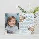 A joyful birthday scene featuring soft blue tones and playful Hedgehog in party hats. The background is adorned with a gentle heart pattern, creating a sweet and festive atmosphere perfect for celebrating a little one's special day. Whimsical illustrations and cheerful colors evoke warmth, laughter, and the magic of turning one. The central photo is a placeholder, designed to be replaced with your own child's portrait for a personalized touch.