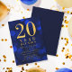 Convite de reunião de classe clássica com as palavras "20 Anos de Reunião" em folha de ouro falsa contra um fundo padrão de luzes azul. O convite tem um fundo azul atrás. Personalize este convite com seus detalhes substituindo o texto do marcador de posição. Para obter mais opções, como alterar a fonte, o tamanho/cor do texto ou o espaçamento entre letras, clique no botão "Personalizar". *Observe que a Marca d'água do Zazzle que aparece na visualização de zoom NÃO aparecerá no produto impresso final. © Rosewood e Citrus