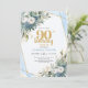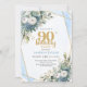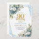 Convites Blue Botanical Gold Frame 90th Birthday Invite