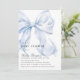 Celebrate the arrival of your little one in timeless style with this Elegant Blue Coquette Bow Baby Shower Invitation. Featuring soft blue tones, delicate bows, and a romantic coquette aesthetic, this design perfectly captures feminine charm and sophistication. Ideal for the modern mom-to-be who loves all things pretty and polished — from satin ribbons to vintage-inspired elegance.