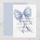 Celebrate the sweet arrival of your baby boy with this elegant watercolor blue bow baby shower invitation. Featuring a delicate, hand-painted dusty blue bow, this design perfectly captures a timeless and sophisticated aesthetic. This chic and minimalist invitation is ideal for a classic luncheon, a serene garden party, or a stylish home gathering to honor the new little prince. All text fields are fully customizable, allowing you to easily add the honoree's name, date, time, location, and RSVP details. Printed on high-quality cardstock with a soft finish, it’s a beautiful and classic keepsake for your special day.