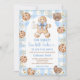 Convites Blue Bow Gingerbread Christmas Baby Shower Gingham