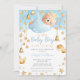 Convites Blue Boy Bear a caminho, Dourado Chá de fraldas de