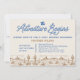 Blue Boys Wilderness Adventure Começa Chá de fraldas Convite Azul e Marrom a aventura inicia o convite ao chá de fraldas com uma cena desértica de natureza selvagem e um título de caligrafia estilo corda. Excelente para um chá de fraldas combinado de selva ocidental.