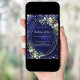 A navy blue, uneven colored background decorated with cones, white berries and greenry. A faux silver oval frame and glitter. Personalize and add the details.
