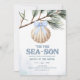 Blue Coquette Bow Coastal Christmas Invitation, Tis The Sea-Son Holiday Party Invite, Editable Winter Coastal Holiday Party