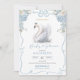 Blue Coquette Bow Crowned Swan Baby Shower Invitation, Dusty Blue Floral Baby Shower Invite, Editable Roses Baby Shower Invite