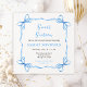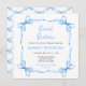 Este doce e brilhante convite apresenta um bonito quadro de fita azul. O texto combina o script manuscrito e as fontes sans serif para uma aparência na moda e moderna.