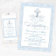 Meninos, batismo azul damasco, convite com cruz azul-pérola e roteiro elegante num bonito fundo azul-damasco. Este elegante convite para batismo de damasco azul é facilmente personalizado para o seu evento simplesmente adicionando os seus detalhes no estilo de fonte e cor, e a redação da sua escolha.