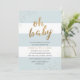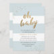 Convites Blue & Dourado Modern Strips Oh Chá de fraldas Inv