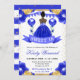 Princesa escura de cor d'água elegante na design de vestimenta azul real com flores azuis e douradas, balões e confete de brilho dourado.