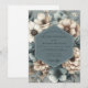 A moody, ethereal design features a rich palette of slate blues and muted taupes. Delicate, painterly floral elements evoke a sense of timeless romance and understated elegance. This design is perfect for a sophisticated and atmospheric affair.