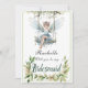 Você será meu cartão de dama de honra com uma Fada azul querido com lindas asas em um balanço coberto de folhas e vinhas. O texto da madrinha é feito em um efeito de aquarela verde cercado por uma vinha de folha. Personalize com o nome de cada dama de honra. Escolha sua fonte e cor favoritas.