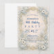 Celebrate a meaningful milestone with this blue floral baroque-inspired design, created for a 90th birthday and framed by delicate ivory and soft blue blossoms with ornate gold detailing. The vintage parchment background and refined botanical composition create a timeless, elegant aesthetic with a subtle heirloom feel, perfect for a graceful and sophisticated celebration while allowing full customization of all details.