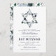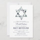 Convite para comemoração Elegante mitzvah com um simples fundo branco que pode ser mudado para qualquer cor, uma estrela azul-aquática floral de david, e um modelo moderno bat mitzvah que é fácil de personalizar.