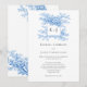 Convites Blue Floral Chinoiserie Classing Monogram Elegant