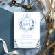 O Blue Floral Crest É um Convite para Chás de fraldas Meninos foi projetado para criar uma profunda conexão emocional com as famílias enquanto elas se preparam para acolher seu novo membro. Este convite apresenta uma crista elegante, inspirada no vintage, adornada com delicados florais azuis, combinando encanto de eterno com elegância contemporânea. No coração da design, um arco azul lindamente trabalhado adiciona um toque de sofisticação e calor, simbolizando a alegria tenra de esperar um menino. Os intrincados arranjos florais evocam um sentido de beleza natural e serenidade, perfeito para celebrar esse marco precioso. Projetado com elegância e sentimento sincero, o convite ao Chá de fraldas do Arco Blue Floral Crest captura a essência de uma celebração alegre. Ela estabelece a palco de um evento memorável e encantador, convidando os entes queridos a se juntar na antecipação e felicidade de receber um novo precioso para a família. Itens correspondentes estão disponíveis.