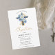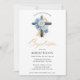 Blue Watercolor Floral Dourado Cross Boy Christening Baptism Convite