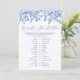 A Floral Azul Ela iria Preferencialmente Jogo de Chá de panela acrescenta um elemento encantador e interativo à sua celebração. Este jogo envolve hóspedes em uma série de perguntas divertidas e alegres "Ela iria Preferencialmente" relacionadas à noiva e suas preferências. Convidados podem compartilhar seus palpites, criando risos e conversas. O charmoso design floral azul adiciona um toque de elegância aos cartões de jogo, fazer-os um na moda para além do seu chá de panela. Personalize o jogo com suas próprias perguntas ou detalhes para torná-lo exclusivamente adaptado à personalidade e aos interesses da noiva. Enquanto os convidados participam deste jogo divertido, eles não só vão desfrutar das festividades como também vão conhecer a noiva um pouco melhor. A Floral Azul Ela Preferencialmente o Jogo do Chá de panela é uma maneira maravilhosa de criar memórias duradouras e trazer alegria para a celebração do seu chá de panela.