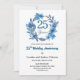 Convites Blue Floral Gold Frame 25th Wedding Anniversary