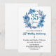 Convites Blue Floral Gold Frame 35th Wedding Anniversary