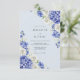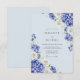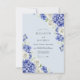 Soft blue hydrangeas and delicate white roses intertwine with charming purple accents. This design evokes a serene and romantic mood with its painterly floral arrangement. The cool color palette creates an elegant atmosphere.