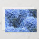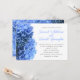 Light blue hydrangea flowers wedding invitations. White paper with black printed text. Full names of the bride and groom are in blue script. The back of the paper is covered in light blue flowers.