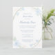 Chá de panela para a Coleção Azul Floral Wreath. A design evoca um sentido de primavera e novos começos com suas matizes pastéis. A aquarela azul floresce, vinha e as folhas enquadram o texto em um fundo branco. Pelo contrário, a parte de trás do cartão é um azul profundo e empoeirado. Experimente este design nas opções de papel elegantes, como linho ou pérola. O papel maleável vai melhorar a delicadeza das flores. Perfeito para uma festa de jardim ou primavera.