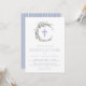 Um convite elegante para o perfeito para a dedicação, batismo ou batismo do seu filho. Este design apresenta uma camada de aquarela com flores e folhas azuis, com uma cruz azul no centro. O título do evento está em fonte azul-serif. O reverso apresenta um padrão listrado azul e branco.