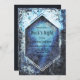 Um convite de festas noturno de uma cor d'água geométrica azul.