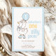 This Blue Gingham Boy One Silly Goose 1st Birthday Invitation features a cute hand-drawn goose with a blue bow and balloon over a baby blue gingham background. It is a fun and cute invite for a spring or summer Boys' 1st Birthday party.