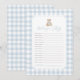 Invite friends and family to fill out their wishes for baby with this elegant blue gingham teddy bear baby shower game card.