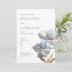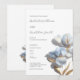 This elegant artistic minimalist wedding invitation features contemporary white 3 dimensional blue and gold flowers.