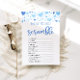 Respostas: 1. EMBALAGEM 2. FRASCO 3. FÓRMULA 4. FRALDA 5. ALTA CADEIRA 6. STORK 7. PIN DE SEGURANÇA 8. LULLABY 9. BEBÊ PÓ 10. TERMÔMETRO 11. ROLADOR 12. BABY MONITOR .......................................................................................... Traga alguma diversão cerebral para o seu chá de fraldas com o Namorados Cachorro Azul Cura 💙 Sweetheart Baby Word Scramble Game! Perfeito para uma 👶 de celebração de um bebê em fevereiro, este jogo convida convidados a desembaraçar palavras sobre o tema do bebê 🍼 🎁 enquanto desfruta de competição amigável. Adorado com adoráveis corações aquáticas azuis 🎨 e um charmoso design, é tão encantador quanto divertido. Fácil de 🖨️ e personalizar, é a adição perfeita ao seu dia especial! ✨ 🎉 📝
