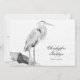 Este convite para o casamento apresenta um desenho de lápis desenhando de um belo Excelente Blue Heron sobre rochas que olham para a água. Tudo feito em tons de preto e branco.