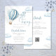 Este charmoso convite para chás de fraldas apresenta um balão e nuvens de ar quente azul e bonito, juntamente com a elegante tipografia de script. Com o código QR do registro e os detalhes do evento no verso. Projetado por Thisnotme©
