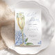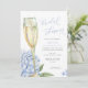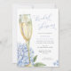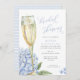 This beautiful design features blue hydrangea blooms, a gold champagne glass and your custom text. Use the template form to add your information.