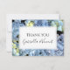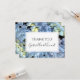 Escreva uma mensagem de agradecimento por presentes recebidos após uma festa, chá de panela ou casamento do bonito Blue Hydrangea Floral Wedding Flat Obrigado Notas. Esta elegante floração personalizada agradece as notas que apresenta uma fotografia floral pintada digitalmente de uma flor azul de hydrangea.