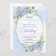 Convites Blue Hydrangea Greenery Gold Oval Wedding Invite